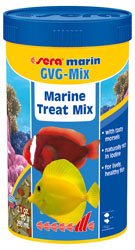 sera marin GVG-Mix is the staple food consisting of carefully manufactured flakes and dried whole food animals for all marine fish that prefer to eat at the surface. The tasty, varied blend is rich in minerals and trace elements such as iodine, and thus optimally fulfills the natural requirements. This effectively prevents deficiencies. Healthy growth, liveliness, splendid appearance and strong disease resistance are supported. The food keeps its shape, is excellently digestible and does not pollute the water. |