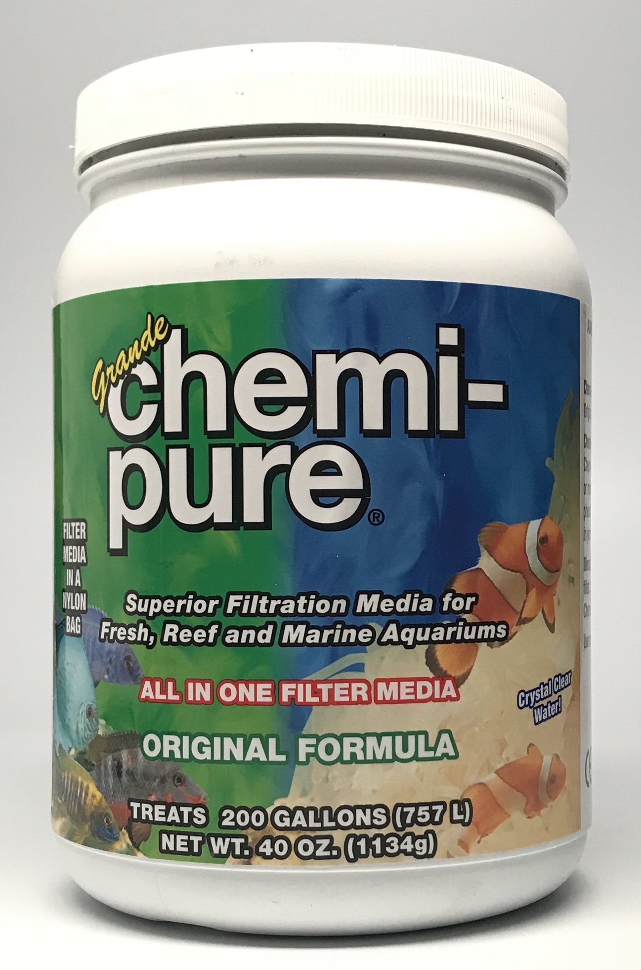 The benefits of using Chemipure Blue: Keeps pH stable and constant Reduces fish loss due to pH changes or polluted water Keeps aquariums crystal clear Provides positive neurological reactions in fish, mimicking a natural environment Removes dissolved organics Helps fish have a better appetite Eliminates osmotic shock Increases fish life span Filters out coppers, metals, odors and phenol Prevents ion antagonism