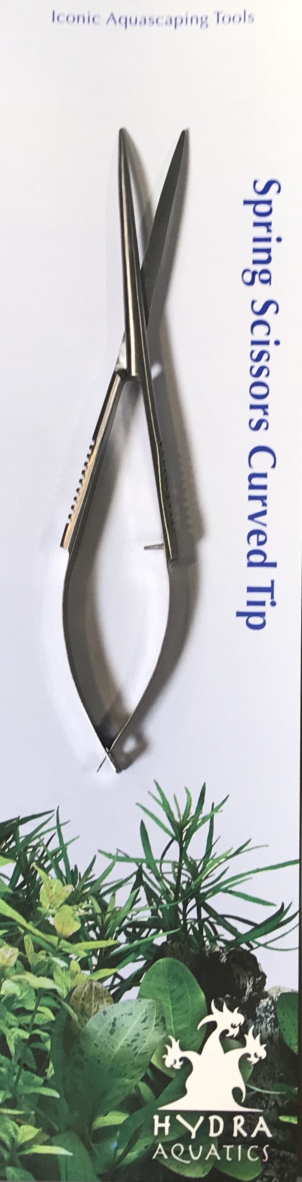 Curved Spring scissors are best used for trimming plants closer to the substrate as the sharp edge allows for precision placement. The compact design, which fits in the palm of your hand, is the perfect tool for pruning Willow moss on driftwood or trimming acicular (needle-shaped) plants in a small sized aquarium.