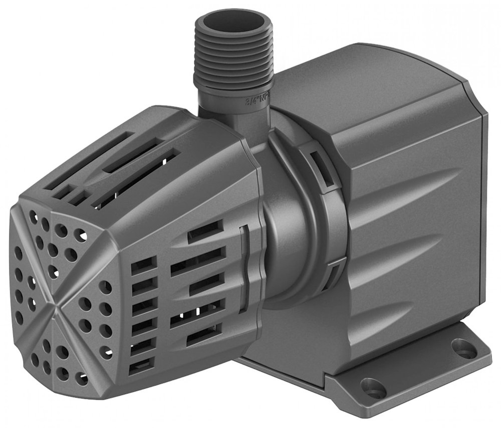 • Magnetic Induction pumps provide years of service in the demanding conditions of smaller ponds, waterfalls and fountains. • Atlantic MD-Series pumps feature better flows at higher heads, a longer warranty, and are easier to service. • Male threads on both inlet and outlet are less restrictive for higher flow. • Volute rotates to accommodate any pump orientation. • A quarter-turn of the volute accesses the impeller assemble for easy periodic cleaning. • Oversized ceramic shaft resists wear better than steel, for longer service life. • Impeller assembly replaces quickly and easily to keep pump running for years. • Large, stable base for anchoring pumps may be removed in tight applications. • Removable pre filter provides integrated filtration, reduces internal wear and extends impeller life. • Included outlet fittings are tapered to fit a wide array of tubing types and sizes. • 1000-1500 gph models include 1/2 inch adapters for use with Triton Check Valve and Fountain Plumbing kits.