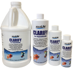 Cloudy water need never be a problem again! Enjoy a crystal clear aquarium with Aqualife CLARIFY for Aquariums. Suspended particles that are too fine to be removed by mechanical filtration cause water to appear cloudy. Whether resulting from overfeeding, a bloom of bacteria, or gravel dust, cloudy water can become clear water in minutes with Aqualife CLARIFY for Aquariums.