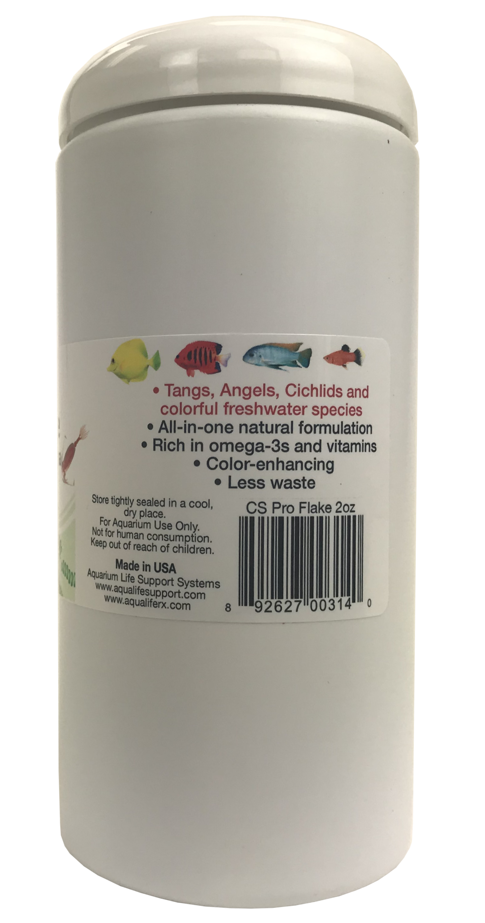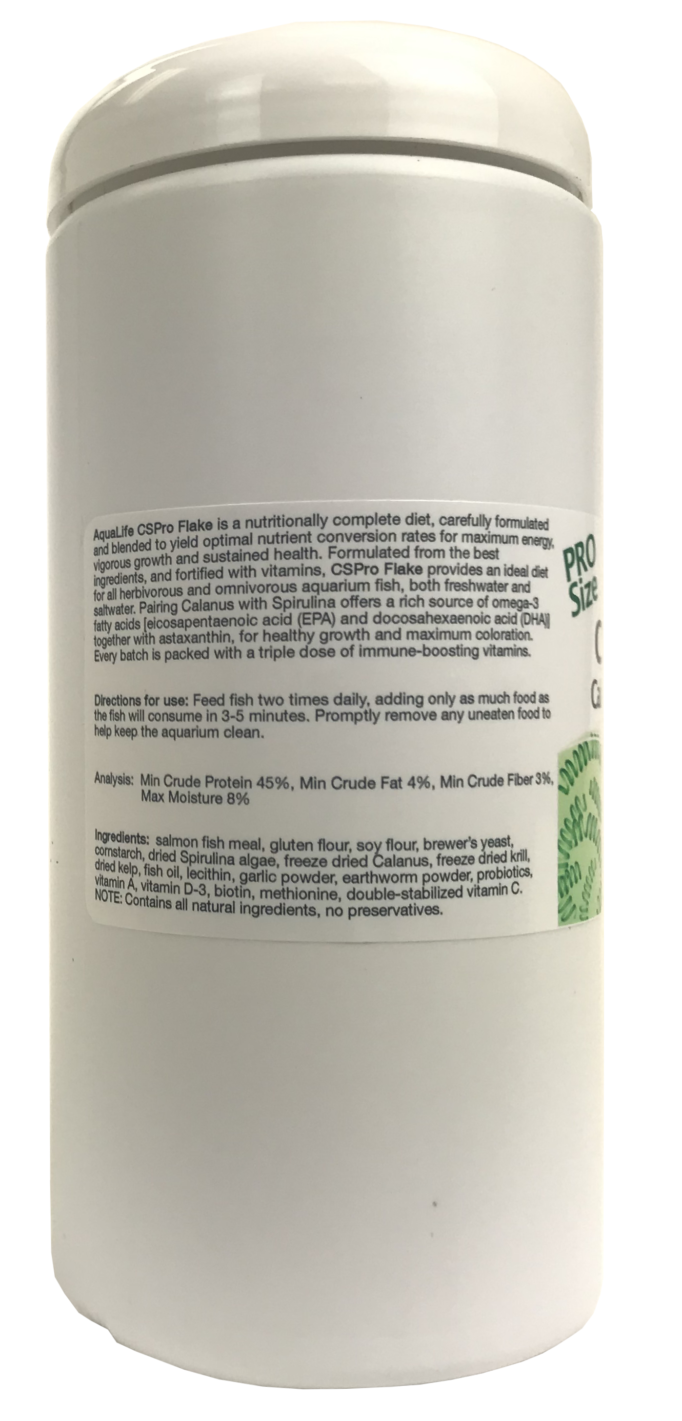 AquaLife CS PRO Flakes provide a nutritious and balanced diet for bottom feeders and nibblers. Fortified with highly digestible proteins and fatty acids, CS PRO Flakes promote health and vigor in both saltwater and freshwater fish and invertebrates.