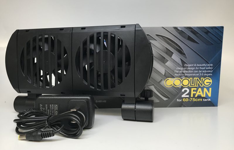 Up Aqua's 2 row cooling fan safely attaches to a rimless aquarium or sump. The fan is low voltage at 12V for added safety. It can reduce aquarium temperatures up to 1-3 degrees Fahrenheit.
