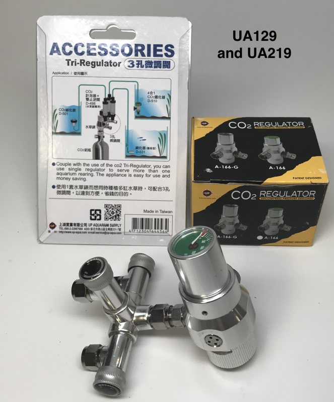 The regulator is the most important component of any CO2 system. The pressure in a gas cylinder can be over 700 psi which is too high for safe use. The regulator reduces the pressure of the tank to a safe, usable level. The CO2 travels through a needle valve after the regulator and then to a check valve that prevents water from back siphoning from the aquarium. After the check valve, a bubble counter is needed. These are not only intriguing, but also provide a visual aid to determining the amount of CO2 entering the system. Up Aqua also offers regulator mounted CO2 Brass Bubble Counter with built in Check Valve (UA-169 or UA131).