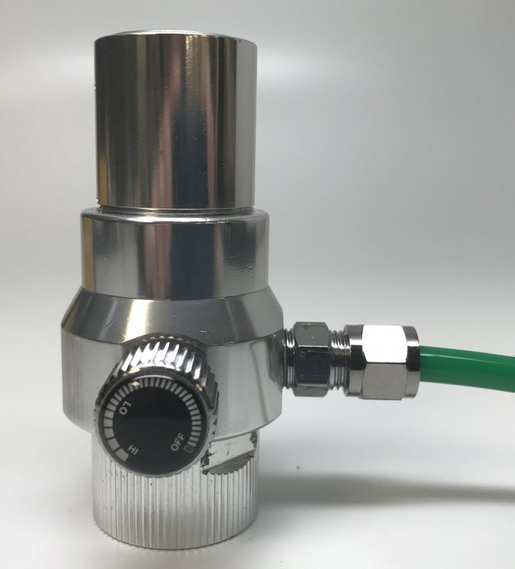 The regulator features a single pressure gauge which reads canister pressure as well as a built in high precision needle valve. The difference between the UA-166G and the UA-168 is that the 166-G (UA129) decompresses the pressure, where the UA-168 (UA130) is straight pressure.