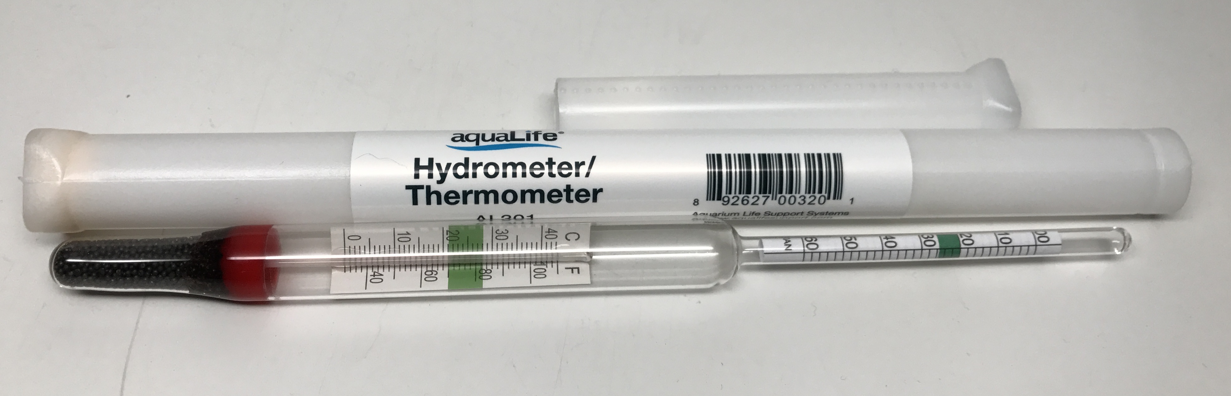 and temperature of saltwater aquariums. The hydrometer measures specific gravity