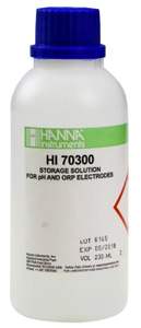 HI70300L pH Electrode Storage Solution (500 mL) HI70300L is an electrode storage solution prepared with reagent grade chemicals that can be used to ensure optimum performance of your pH and ORP electrodes. Properly storing your pH electrode in a solution keeps the glass membrane well hydrated which maintains proper function and provides accurate readings. • Special formulation to minimize bacterial growth on your electrode. • Clearly marked expiration date and lot number for traceability. • Designed for storing any pH or ORP electrode.