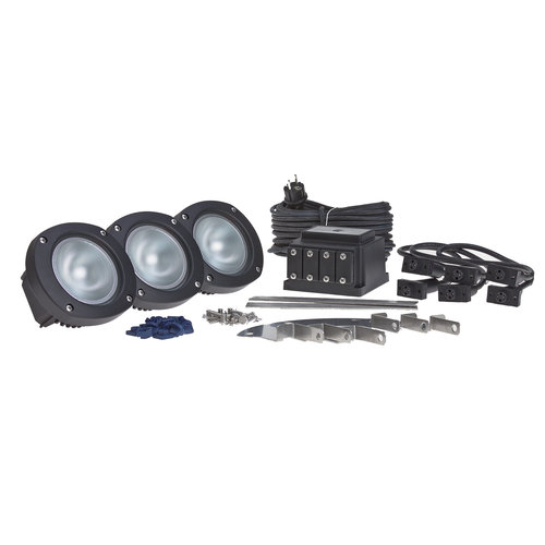 Inside of the Box: 3 LunAqua 10 Spotlights; 3 Stainless Steel Holders; 1 Underwater Transformer; Special Holder; 66 ft. Cable