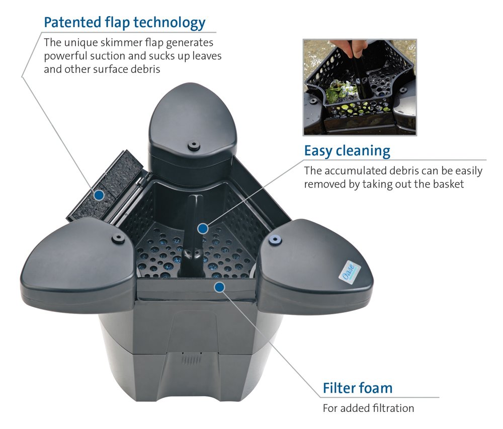 The SwimSkim surface skimmer will do the hard work for you! It offers strong suction, does not require a separate pump and is ideal for retrofitting. Its powerful suction cleans a pond surface (coverage up to 270 square ft.). The SwimSkim floats along the surface of your pond, removing large debris. It is easy to use - just plug it in and drop it in your pond. It automatically adapts to any water level (from a 16 inch water depth). The integrated aerator oxygenates your pond. Because the SwimSkim does not require a separate pump, it's compact design makes it ideal for retrofitting and allows for flexibility when water level fluctuates. While pond inhabitants do pollute the water, the environment surrounding the pond is also a major contributor. The aesthetic value of a pond is sometimes hampered by debris: pollutants can float on the surface and cloud your view. The SwimSkim rids your pond of pollen, leaves, debris, particles, and dust, which are all a major burden to a pond's ecosystem. The SwimSkim surface skimmer is designed to float around and draw debris from the surface of the water for a prettier view and a healthier pond.