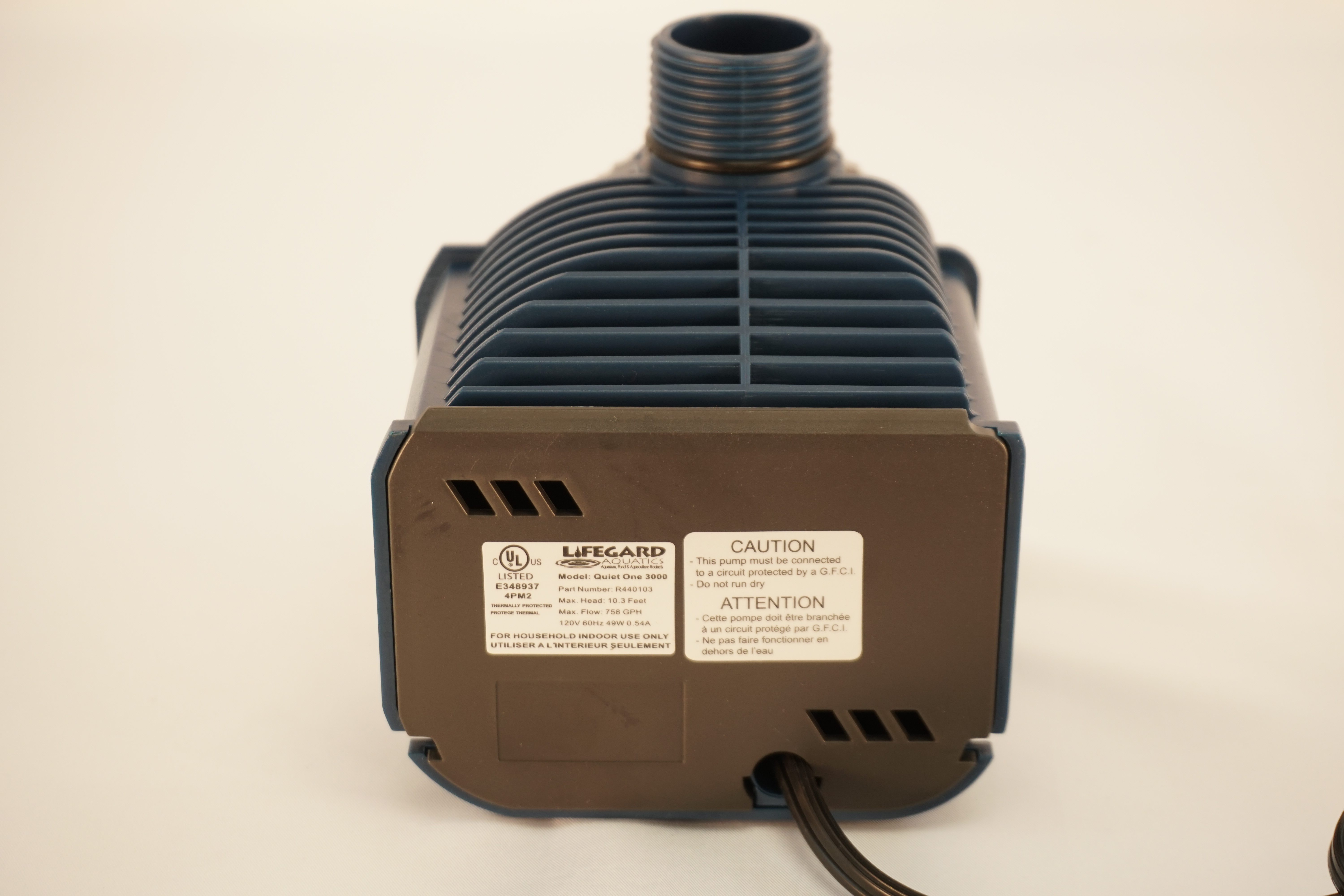 -10.7" Head pressure -594GPH -Extremely quiet operation…so quiet you’ll swear it’s not running. -Safe for Salt or Freshwater applications. -Use with all types of filters. Includes 6’cord. -ECO-SAV runs cooler and generates more power with less energy consumption. -Internal recirculation prevents overheating and ejects obstructing debris. -Remarkable impeller technology provides combined rotors, improved shaft materials and corrosion resistant bearings. -EZ access cover allows ease of maintenance of rotor, shaft and removable impellers. -Innovative “cooling chambers” provide air-cooling during dry use and water-cooling in wet applications. -Pre-filter Grill with Flow Control Valve in submersible applications. |