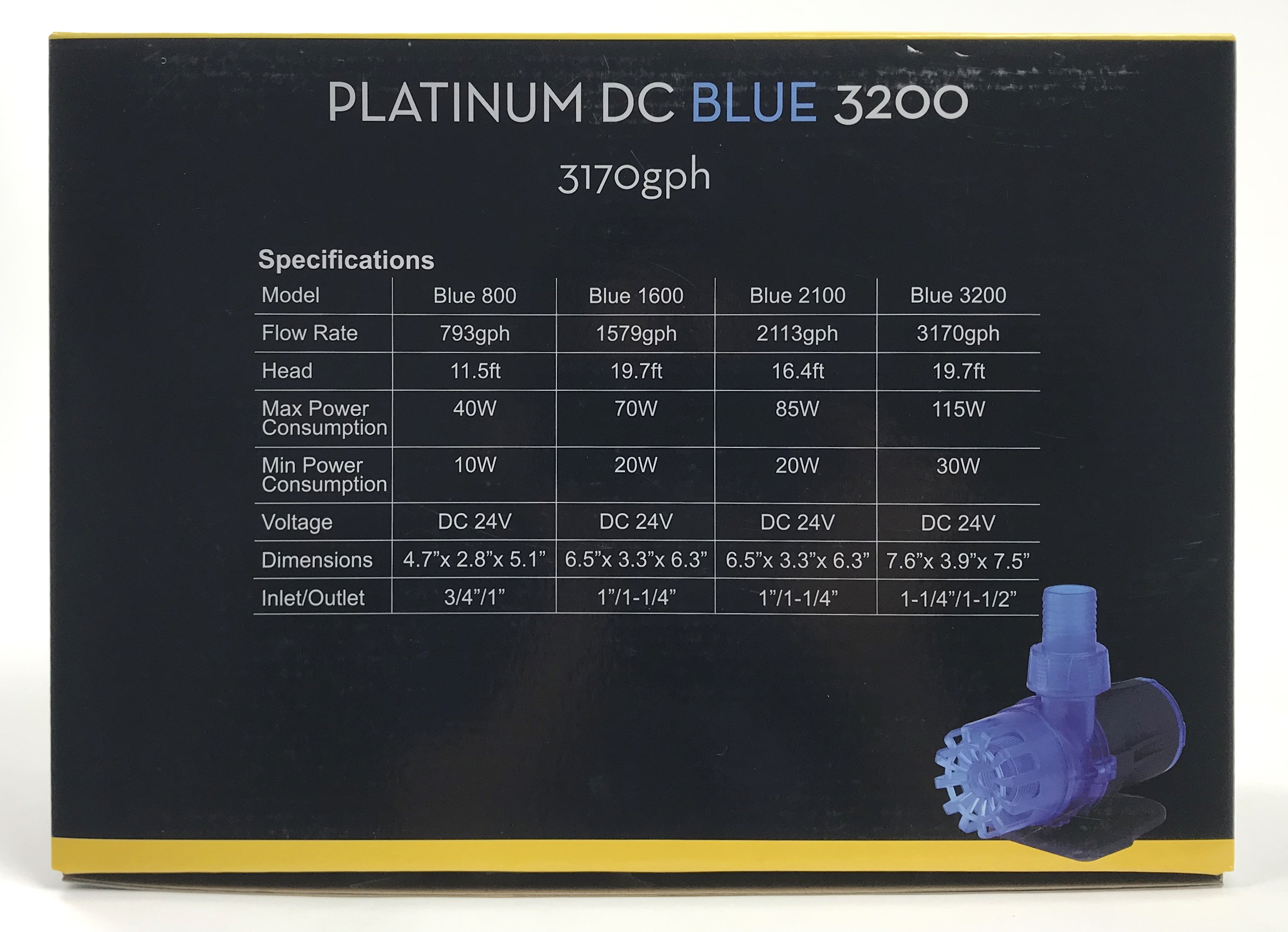 Platinum DC Blue 3200 Pump - 3170 gph 810062461622 -Sine wave technology, super quiet <20dB