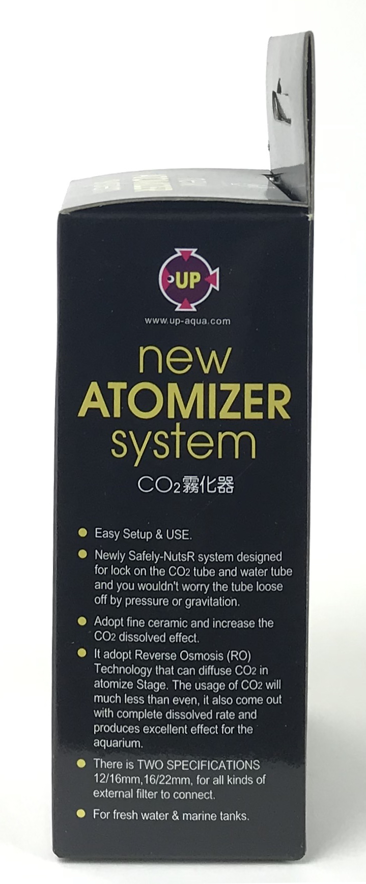 This is the most efficient way to deliver CO2 in large or high flow aquariums as it ensures proper CO2 dissolution. The atomizer is used with a 9/16" or 16/22 mm ID hose and atomizes CO2 at a working pressure of 36 psi.