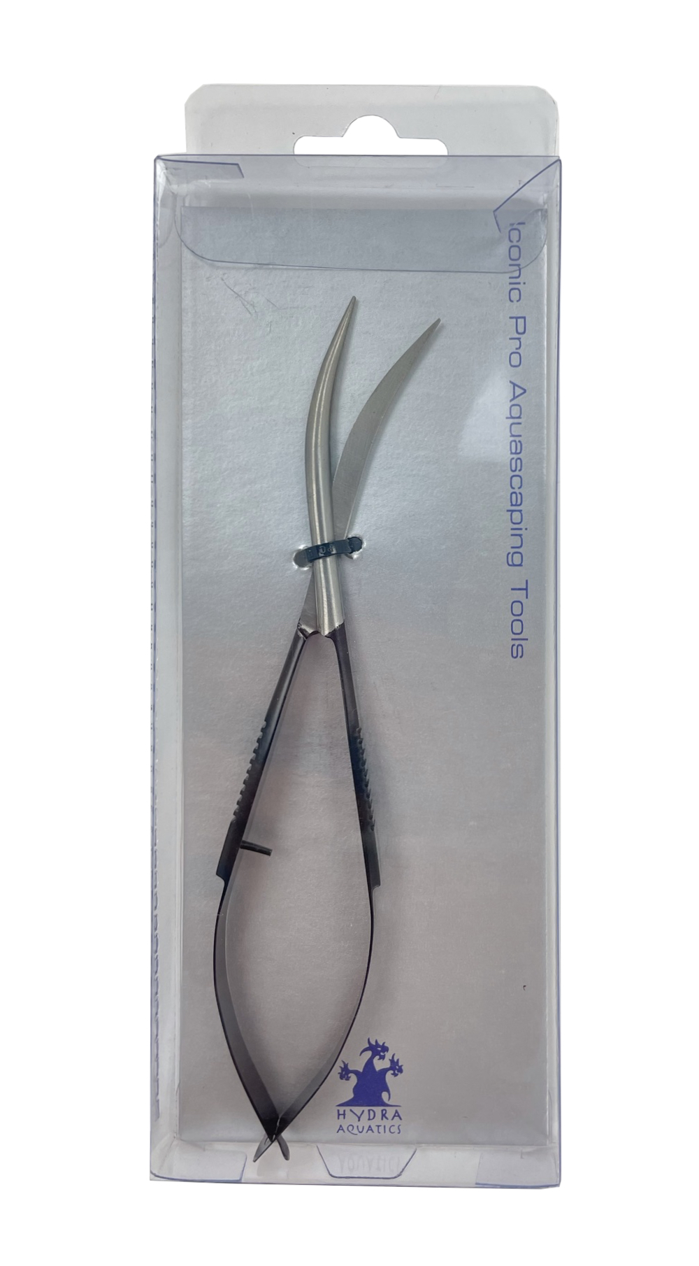 Hydra Aquatics’ Iconic Curved Spring Scissors are best used for trimming plants closer to the substrate as the sharp edge allows for precision placement. Unique spring action always returns scissors to open position allowing minimal effort to be used when cutting. This increases maneuverability even in the tightest of spaces. The compact design, which fits in the palm of your hand, makes this the perfect tool for pruning Willow moss on driftwood or trimming acicular (needle-shaped) plants in a small sized aquarium.