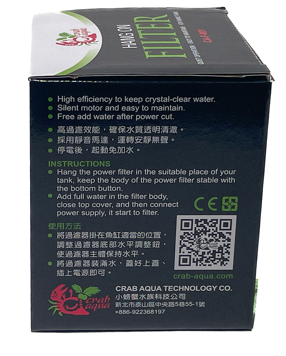 The Crab Aqua Hang on Filter is compact and efficient filtration system designed for aquariums by UP Aqua.