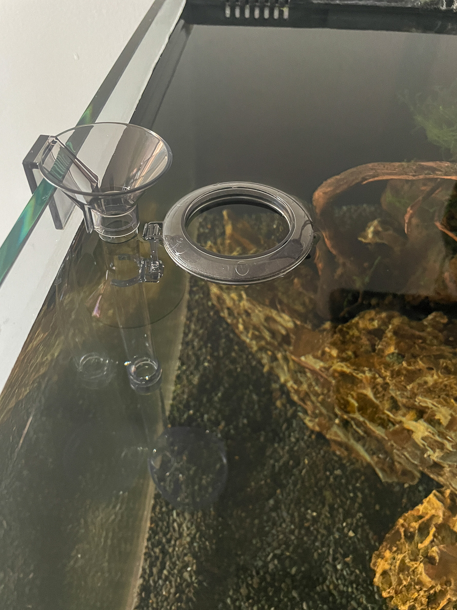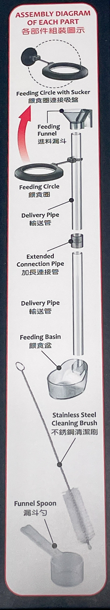 • Can be used for floating and/or submerged • Clear acrylic tube for feeding • Can be installed on vertical glass • Supports up to 16mm glass thickness • Total height of food container sink 21mm (for aquariums height 9 inches up) and 38mm extension (for aquarium height 16 inches up)