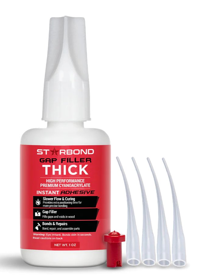 Starbond EM-2000 Thick CA Glue is known as the “gap filler’. This thick CA adhesive has honey-like viscosity, making it the go-to glue for filling large voids and gaps, and heavy-duty bonding. With its strong bonding capabilities, EM-2000 stays in place, even when applied at an angle. This glue is specially formulated to have a longer curing time, allowing as much as two minutes for positioning and the most precise bonding.