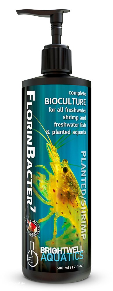 Brightwell Aquatics ShrimpFlorinBacter7 is a selective complex of extremely effective microbes and enzymes that rapidly reduces the concentrations of organic nitrogen, ammonia, nitrite, nitrate, phosphate, and organic carbon in freshwater ecosystems, leading to greatly improved water quality; better water quality typically leads to healthier aquarium inhabitants. Use of ShrimpFlorinBacter7 does not alleviate the requirement for regular partial water changes to help maintain proper concentrations of elements that are vital to long-term health and survival of aquarium inhabitants. No product, regardless of manufacturer’s fatuous marketing claims, can do this. An aquarium is a living ecosystem and requires proper care by the aquarist; regular partial water changes constitute a large part of this care.