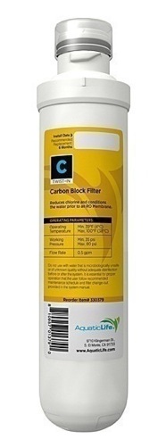 This is a solid carbon block prefilter for TFC or Hi-S R/O filters. It is the finest carbon filter made and is rated to remove 2 ppm chlorine for 3750 gallons.