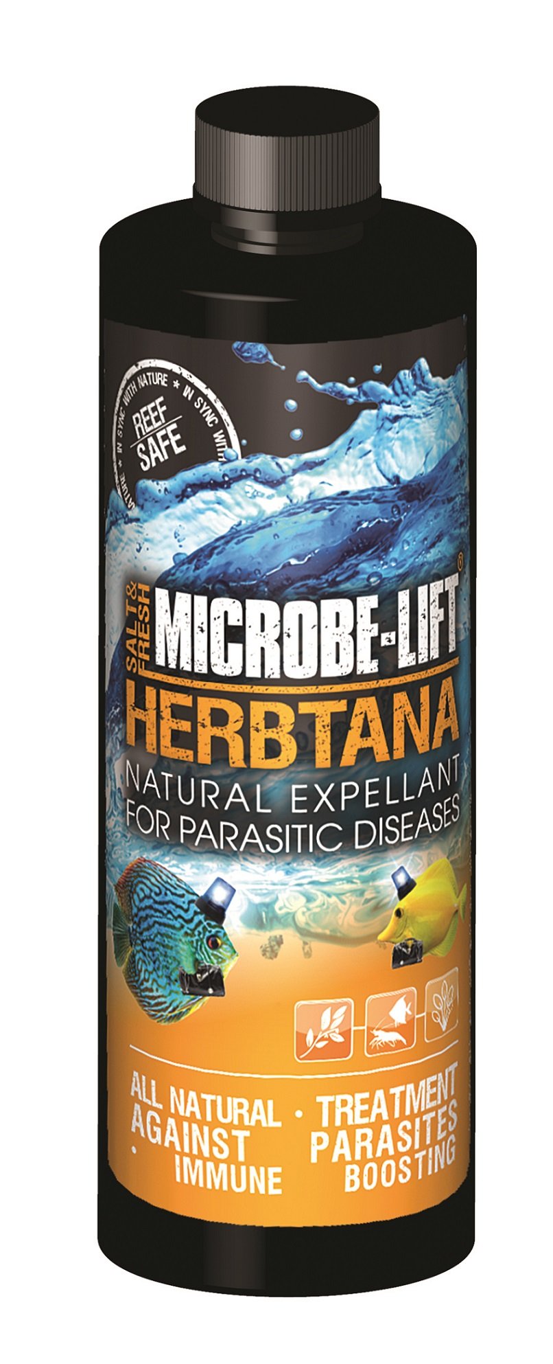 · Oodinium Herbtana is a unique, herbal, immune-enhancing stimulant. Parasitic infections are characterized by symptoms, such as: milky skin, flashing, and heavy breathing. Parasites are generally present on most fish at very low levels at all times. These are naturally controlled by the fish's immune system. When stress levels increase, the ability of the immune system to respond to its requirement to control the natural level of parasites is directly affected. This poor response allows parasites to increase in numbers, thus causing any of the serious above mentioned health issues in the host fish. Herbtana supports the fish's immune system, driving off the excess parasites. Since they cannot return to the fish during treatment, the majority of the parasites will starve without a host. This product is intended for use with all ornamental and aquarium fish only, and may not be used for fish intended for human consumption. Directions: