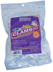 Product Features All natural, frozen (raw) baby clams for marine carnivores. Allows finicky eaters to feed naturally from the shell. Excellent for fish that need to grind their teeth. Proven to trigger a natural feeding response in many finicky marine fish including angels and butterflies. Excellent for fish that need to grind their teeth including triggers and puffers.