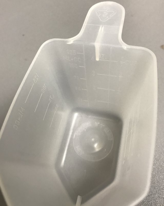 Measures 25ml to 125 ml, and shows milliliters, ounces, and cups.