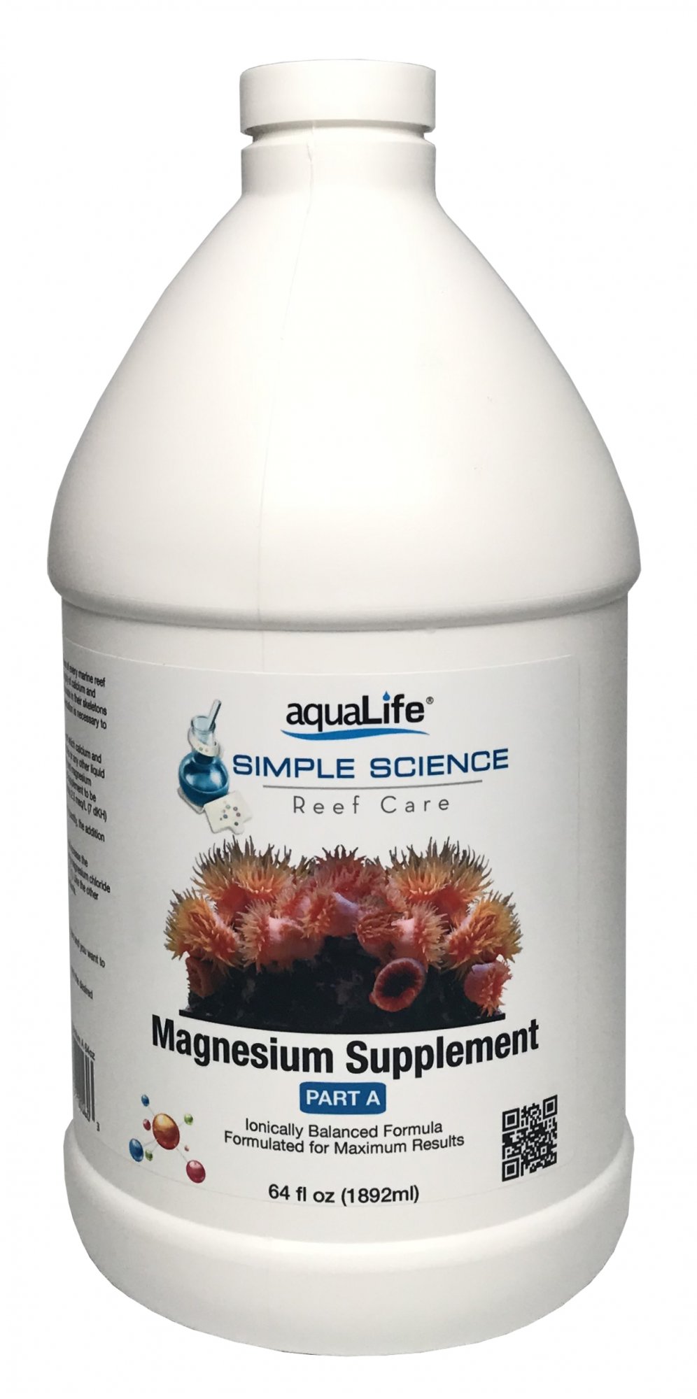 AquaLife Simple Science Magnesium Part A contains 55000 ppm of magnesium. Each ml added per gallon will increase the magnesium concentration by 14.47 ppm. To avoid undesirable ionic imbalances, the product is formulated using magnesium chloride and magnesium sulfate, while maintaining the ratio of chloride and sulfate found in natural seawater. (NSW = 7.1:1). Like the other components of the AquaLife Simple Science product line, our Magnesium is produced using high-purity ingredients.