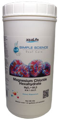 When prepared as directed, the magnesium solution will contain 55000 ppm of magnesium. Each ml added per gallon will increase the magnesium concentration by 14.47 ppm while maintaining the ratio of chloride and sulfate found in natural seawater. (NSW = 7.1:1). Like the other components of the AquaLife Simple Science product line, our magnesium chloride hexahydrate is a high-purity product.