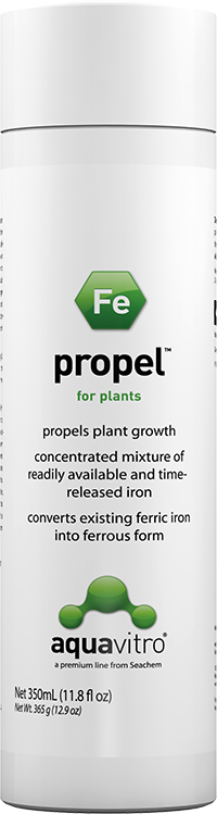 If iron is provided in the ferric form (Fe3+) then it must be reduced by the plant to the ferrous form (Fe2+) before it can be utilized. This process of conversion (known as reduction) requires the plant to expend physiological energy. propel provides iron already in the ferrous form thus enhancing iron utilization. In addition, propel contains a reducing agent that helps convert any iron present (such as iron from substrate) into the ferrous form.
