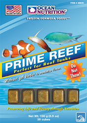 Product Features Made in the USA A natural gourmet diet rich in seafood and algae High protein content Supports coloration and will help maintain health and vitality Excellent for reef tank applications, including nano reef tanks Frozen Prime Reef™ is a gourmet frozen food for reef aquariums and is an excellent food for nano reefs. It is a special blend of fresh seafood, zooplankton and algae that mimics the nutritional value of a natural diet with an exciting flavor to entice finicky eaters. This formulation can be fed to a multitude of fish and invertebrates that require pure marine proteins and a balanced diet. Prime Reef™ does not contain a gel binder. It simultaneously feeds the fish corals and invertebrates in reef aquariums. The bite-sized pieces feed the fish; the juices and fine particles feed the reef. This blend of premium ingredients is easy for fish to digest so they produce less waste and aquariums stay cleaner.